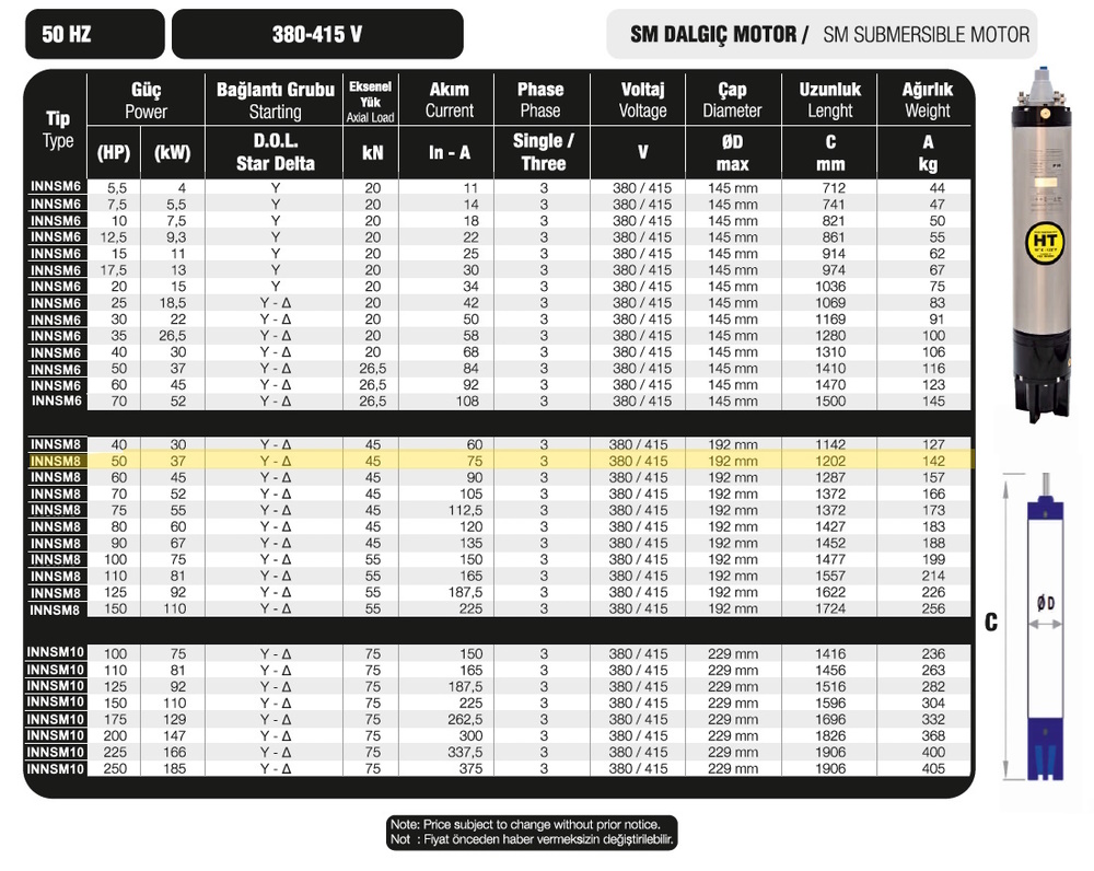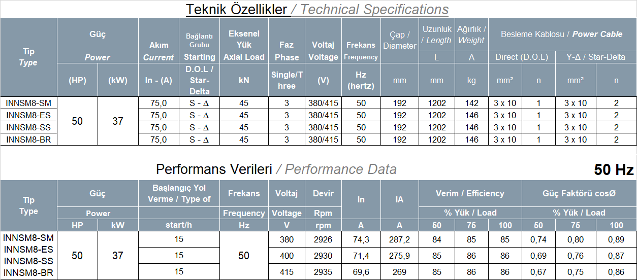 ● Axial load carrying capacity: 40HP-90HP motors and 45 kN 100HP-150HP motors 55 kN